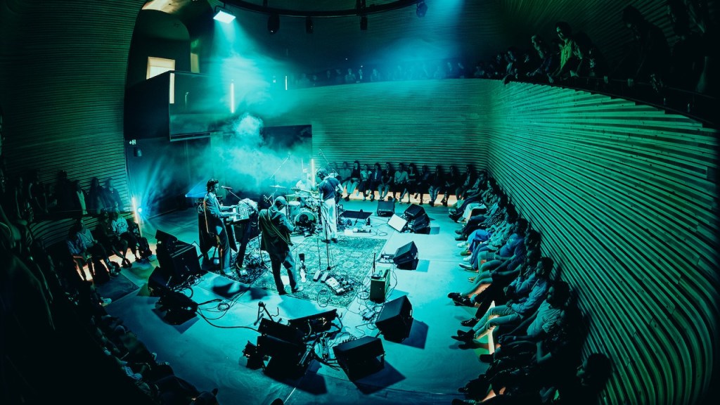 The artist – in this case, Mildlife – performs not from a stage but on the venue floor. Everyone gets a good view of them, even my mum, who’s five-foot-not-much – that is, if you’re not distracted by the venue’s architectural novelties.