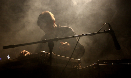 Silhouetted on stage by a green, blue and white glowing cloud of smoke, the band cut an impressive shape, each figure bent over his own station of samplers, laptops, synths and controllers. Playing a small selection of tracks from their first album The Sound Of Trees Falling On People, most of the set was made up of material from +DOME, material that has had new life breathed into it through the live show.