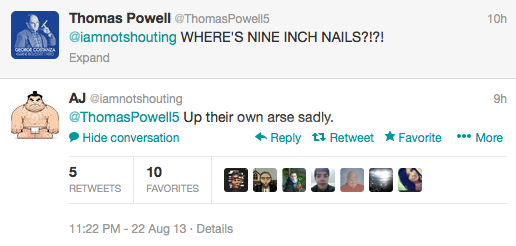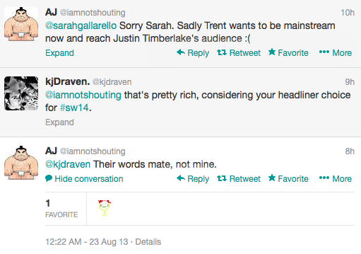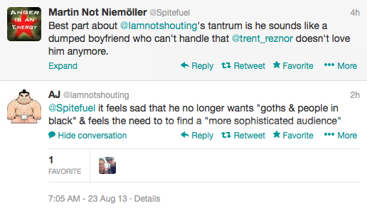 It had been suggested that Maddah was close to securing the Closer outfit in the lead-up to the announce, but he’s now taken to Twitter (surprise!) to hit out against the band, saying, “Trent wants to be mainstream now and reach Justin Timberlake’s audience… it feels sad he no longer wants ‘goths and people in black’.” You can check out screencaps of his rant below.