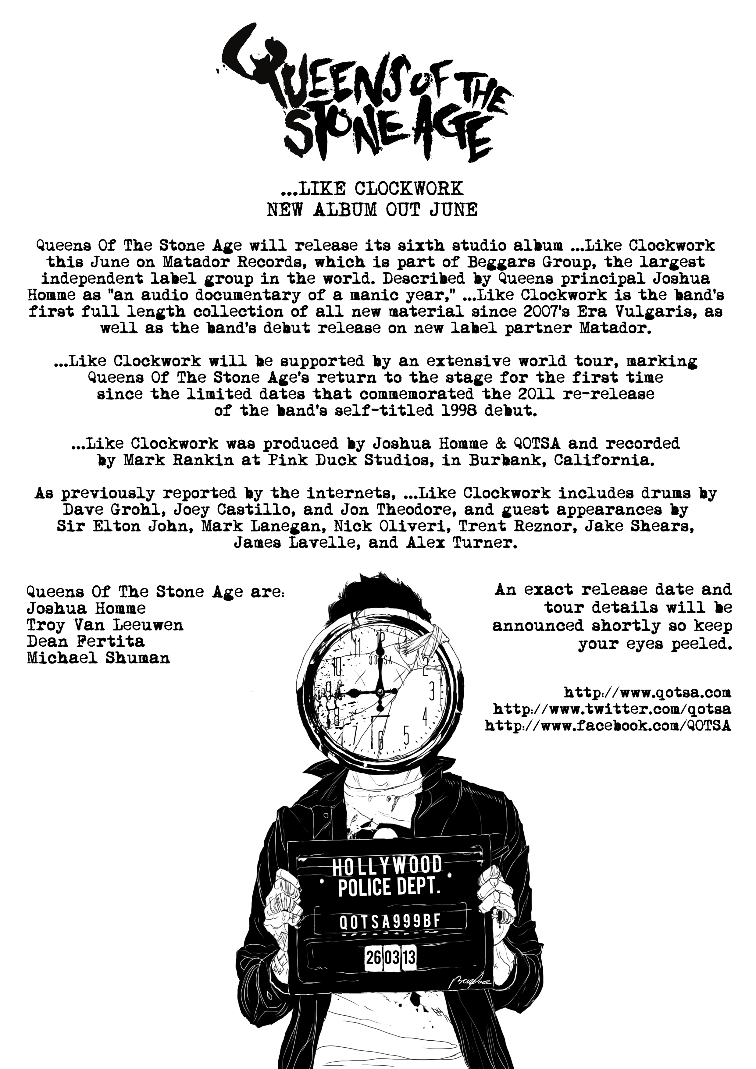 Just when you thought there’s no way Queens Of The Stone Age can cram any more guests onto their upcoming album, …Like Clockwork, 3 new collaborators have been revealed in a new press release, as well as the band announcing an imminent world tour.