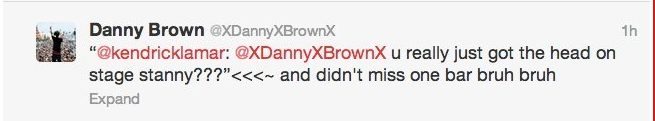 “@kendricklamar: @XDannyXBrownX u really just got the head on stage stanny???