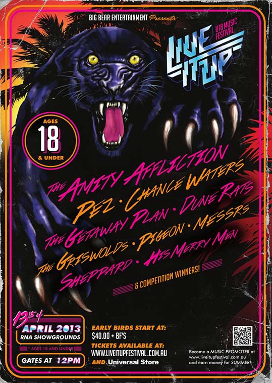 The final line-up for Live It Up 2013 has been revealed. Along with the aforementioned artists, Brissy’s under-18s can also enjoy the likes of triple j faves Dune Rats and The Griswolds along with local acts Pigeon, Sheppard and His Merry Men.