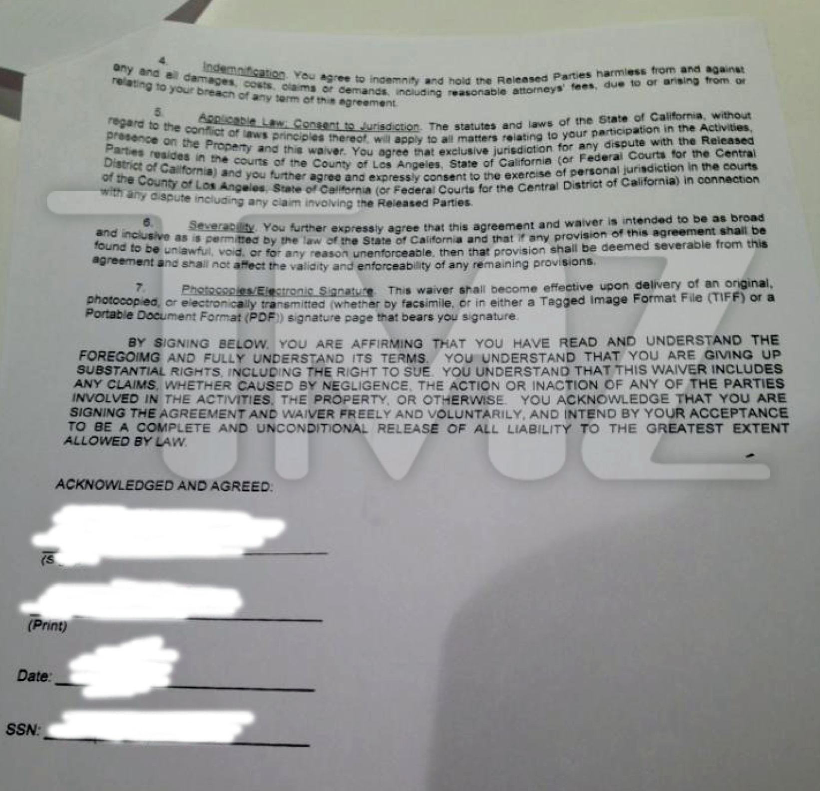 According to the contract, anyone who wishes to engage in “potentially hazardous” activities will do so on their own accountability. You just know it’s going to be a loose party when “potentially hazardous” is being thrown around.